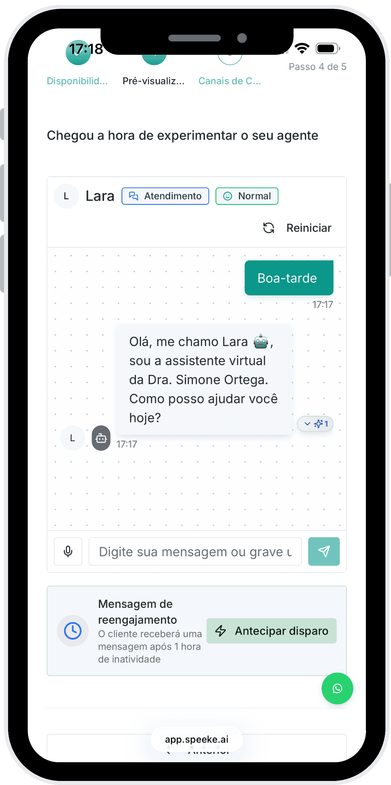Em poucos minutos você terá um atendimento treinado por você que vai atuar 24/7