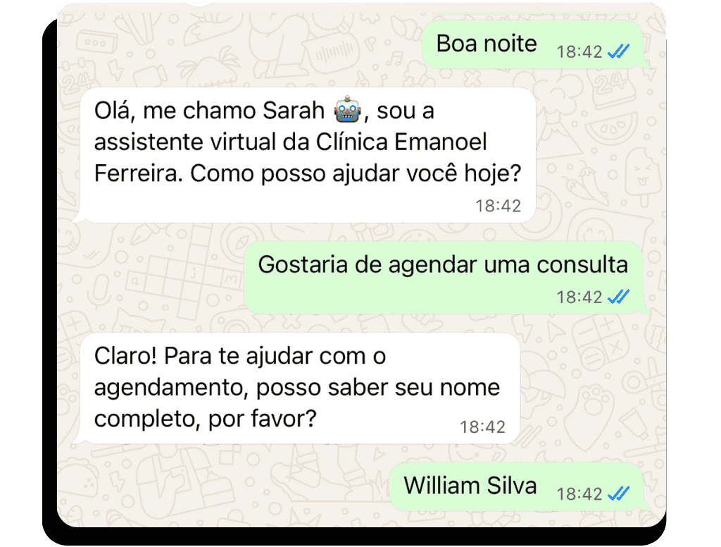 Treine um atendente digital que responde, no seu Wahtsapp e agenda consultas e serviços na sua agenda do Google, 24/7 durante o ano inteiro!